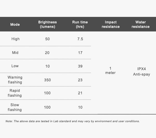 1. Blinkmodi mit max. 350 LED-Lumen für hervorragende Sichtbarkeit während des Tages