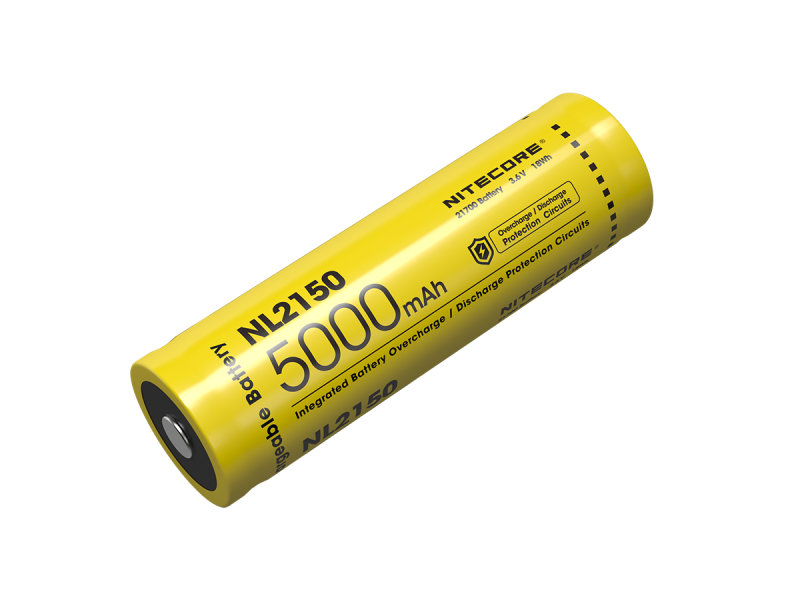 - The new Nitecore Li-Ion battery type 21700 NL2150 has a capacity of 5000mAh.