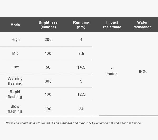 2. Eye-catching warning flash for daytime riding and multiple brightness levels for various ridings